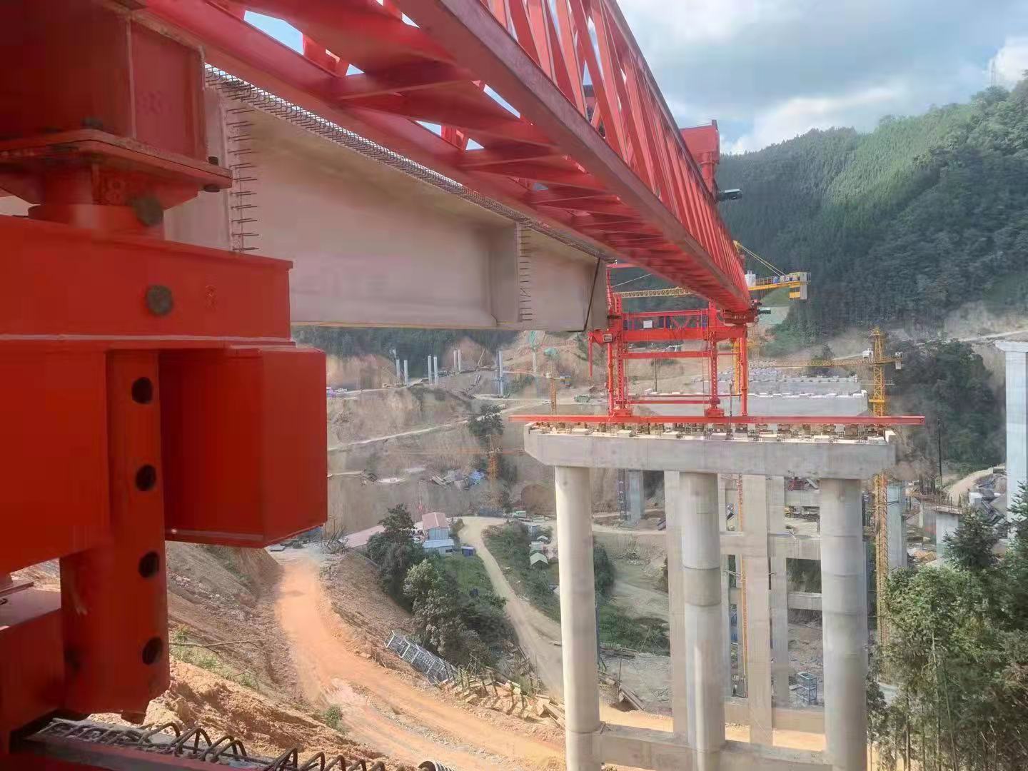 中交二航局平塘至天峨高速公路四標(biāo)天峨樞紐大橋互通河南高遠(yuǎn)榮譽(yù)出品GYLQ200T-40M自平衡過(guò)跨架橋機(jī)首架成功
